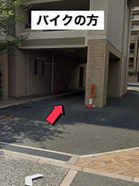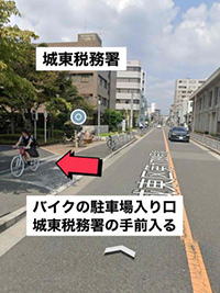 ※バイクの方は税務署手前に入口がございます。一方通行のためお帰りの際は
